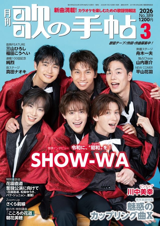 NEW2026.01.21【SHOW-WA】1/21(水)発売「月刊 歌の手帖でSHOW-WAが表紙初登場!1/21(水)発売「月刊 歌の手帖」にSHOW-WAが登場! な、なんと!表紙初登場となります! https://www.utate.jp/shopdetail/000000000449